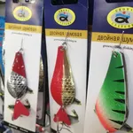 Блесна состоит из двух металлических пластин разного цвета. Имеет шумой эффект. Красный лепесток является точкой атаки для рыбы и способствует более медленной проводки.