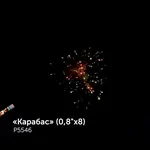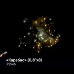 Эффекты: 1. Желто-белая мерцающая сфера (пион). 2. Зеленые звезды с пышными хвостами (кокос) и облако треска (трещащий дождь). 3. Красно-зеленая мерцающая сфера (пион). 4. Золотое мерцание и облако треска (трещащий дождь).